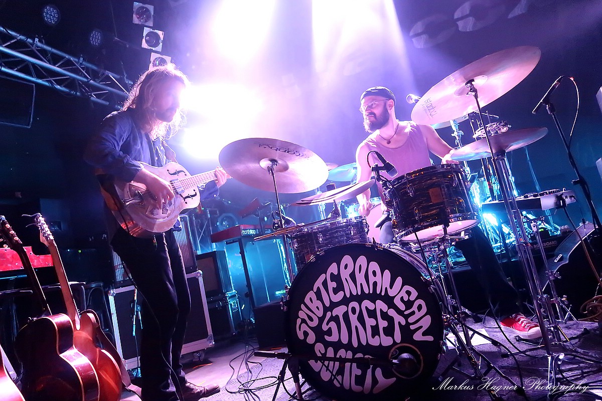 Subterranean Street Society, das dänisch-niederländische Trio aus Amsterdam, Niederlande eröffnete den Konzert-Abend. Mit der musikalischen Mischung aus Alternative Rock mit „Blues-Touch“ begeisterte das Trio die Zuhörer vom ersten Ton an: „Wake Me Up“, im fast ausverkauften Knust. Die Band rockte ab wie die Sau. Besonderheit war der teilweise Gospel-Gesang von Louis Puggaard-Müller wie in einer Kirche der Südstaaten der USA, der die Fans mitriss, die als Background-Chor besonders bei „So Sorry“ agierten. Ivo Johan Schot wechselte ständig als wilder Mucker vom Bass zur Gitarre. Joost Koevoets war der Power-Schlagzeuger mit süßlich angehauchter Stimme und ständigem Grinsen. Mit „Indispensable Love“ ging das Set umjubelt zu Ende. Subterranean Street Society dürften viele neue Liebhaber gefunden haben: etliche CD-Käufe an ihrem Merch-Stand erwiesen es.
