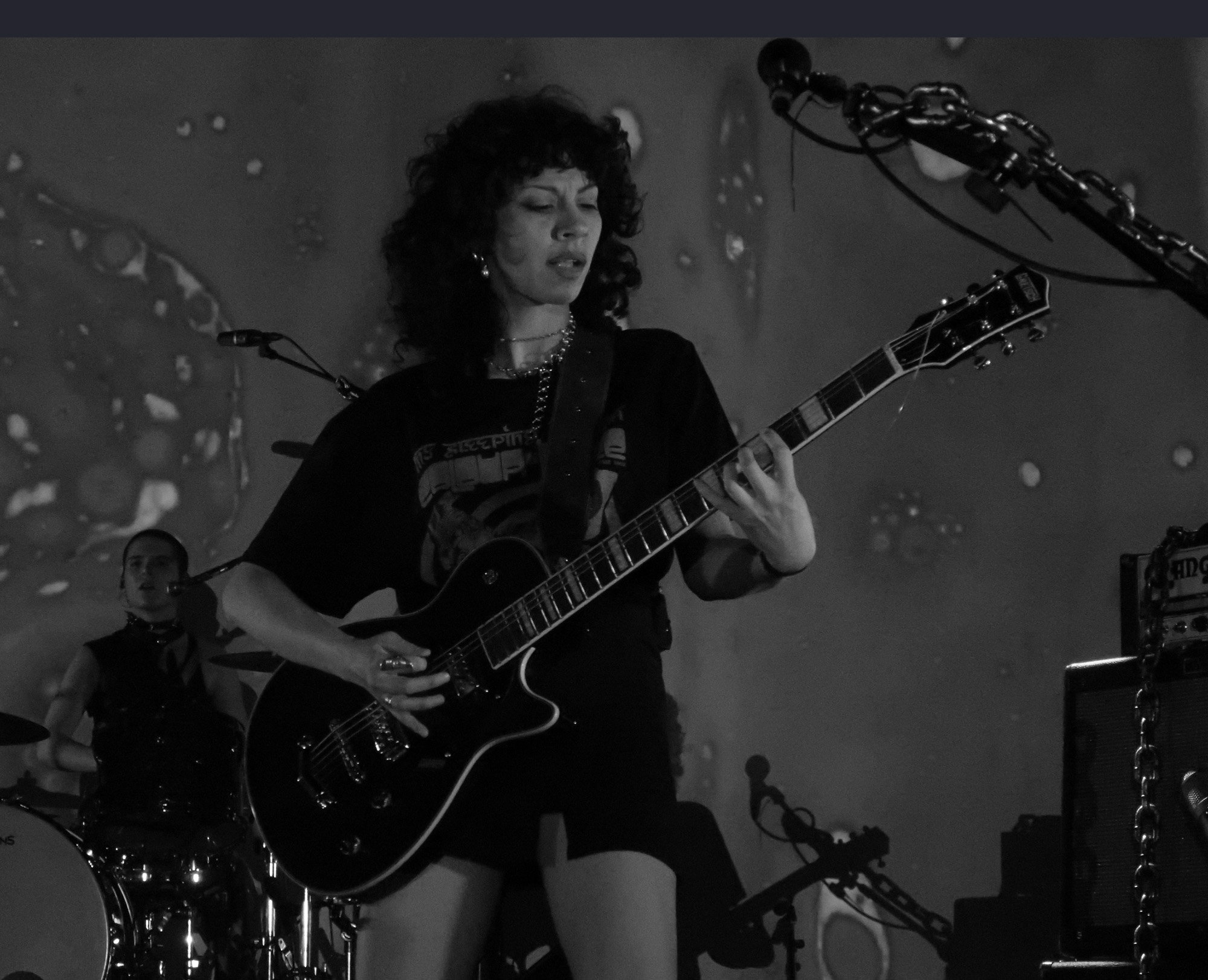Die halbstündigen Umbaupausen zwischen den Bands waren sinnvoll, vor allem für mich denn so konnte ich immer wieder Gespräche mit einigen Bekannten und Unbekannten führen und ein bisschen Schmäh der Einheimischen mitkriegen. Zuerst lief mir Lizzy aus Linz/Donau über den Weg: sie kreiert wunderbare Konzert- und Festivalplakate, u.a. für das Krach am Bach und früher Lake On Fire. Wir kennen uns seit Lake On Fire 2017 und unsere Wege kreuzen sich bedauerlicherweise nicht sehr oft: da gibt es natürlich einiges zu erzählen und so verpasste ich leider optisch die nächste Band im Tableau, The Jupiter Effect. Ihren Sound konnte ich zwar draußen vernehmen aber ich möchte in diesem Fall keinen Ferndiagnosenbericht über sie schreiben….