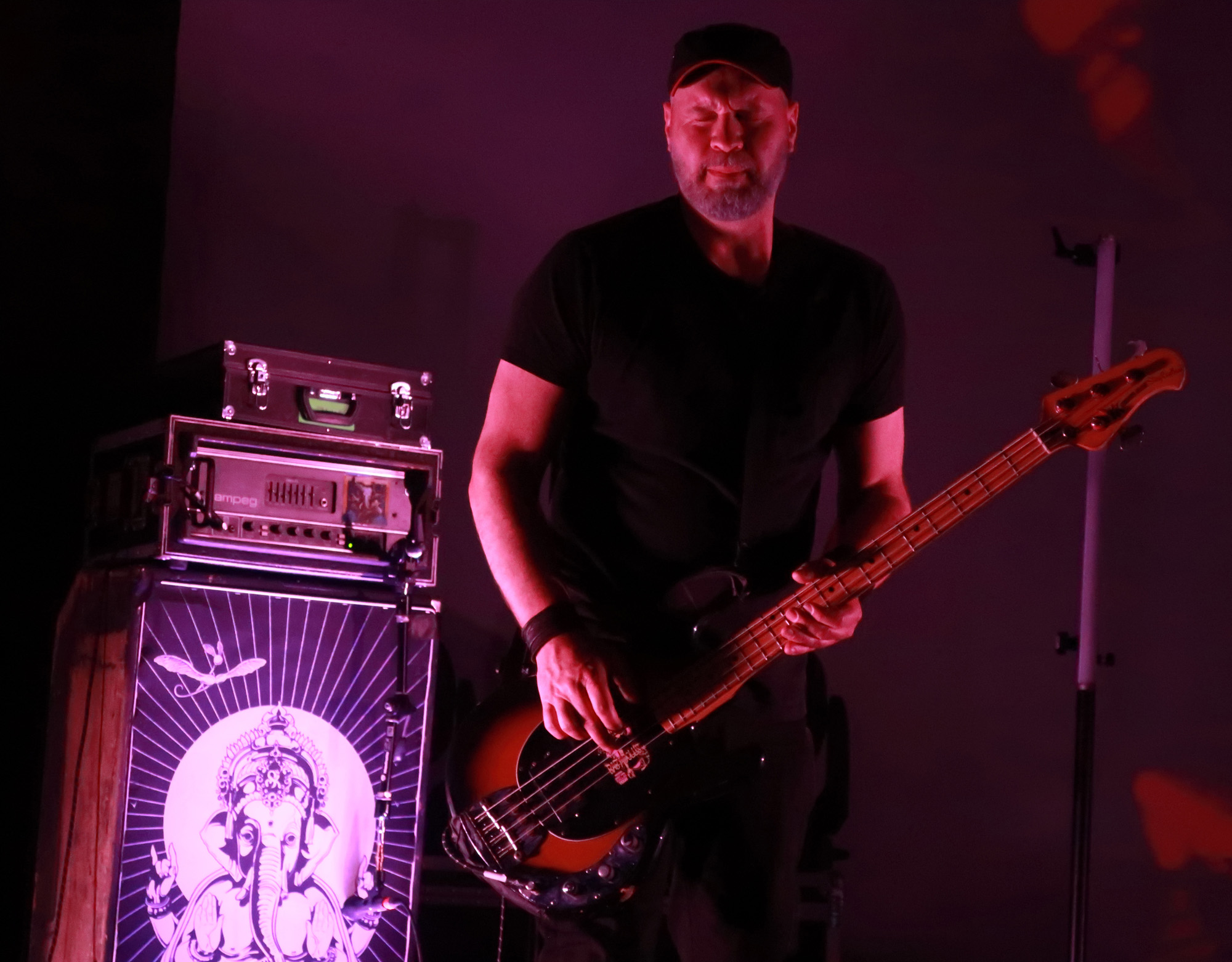 In der Umbaupause traf ich erfreut wieder einige Bekannte wie Thomas, den Besitzer von Stonefree Records aus Wien, Florian Razocha, dem das Lake On Fire Festival zusammen mit Chris Gütl fabelhafte, mir Gänsehautverursachende Aftermovies verdankt und kam auch in einige Gespräche mit Freak Valley Besuchern aus Innsbruck und Wien und Salzburg. Und nicht zu vergessen Daniel, den Gitarrist der leider verblichenen Wiener Band Minus Green, zu der auch der Soundboarder Lukas, jetzt bei Speck, und Veranstalter Clemens gehörten, der als nächster Act mit seinem neuen Band „For Eons“ auftrat.